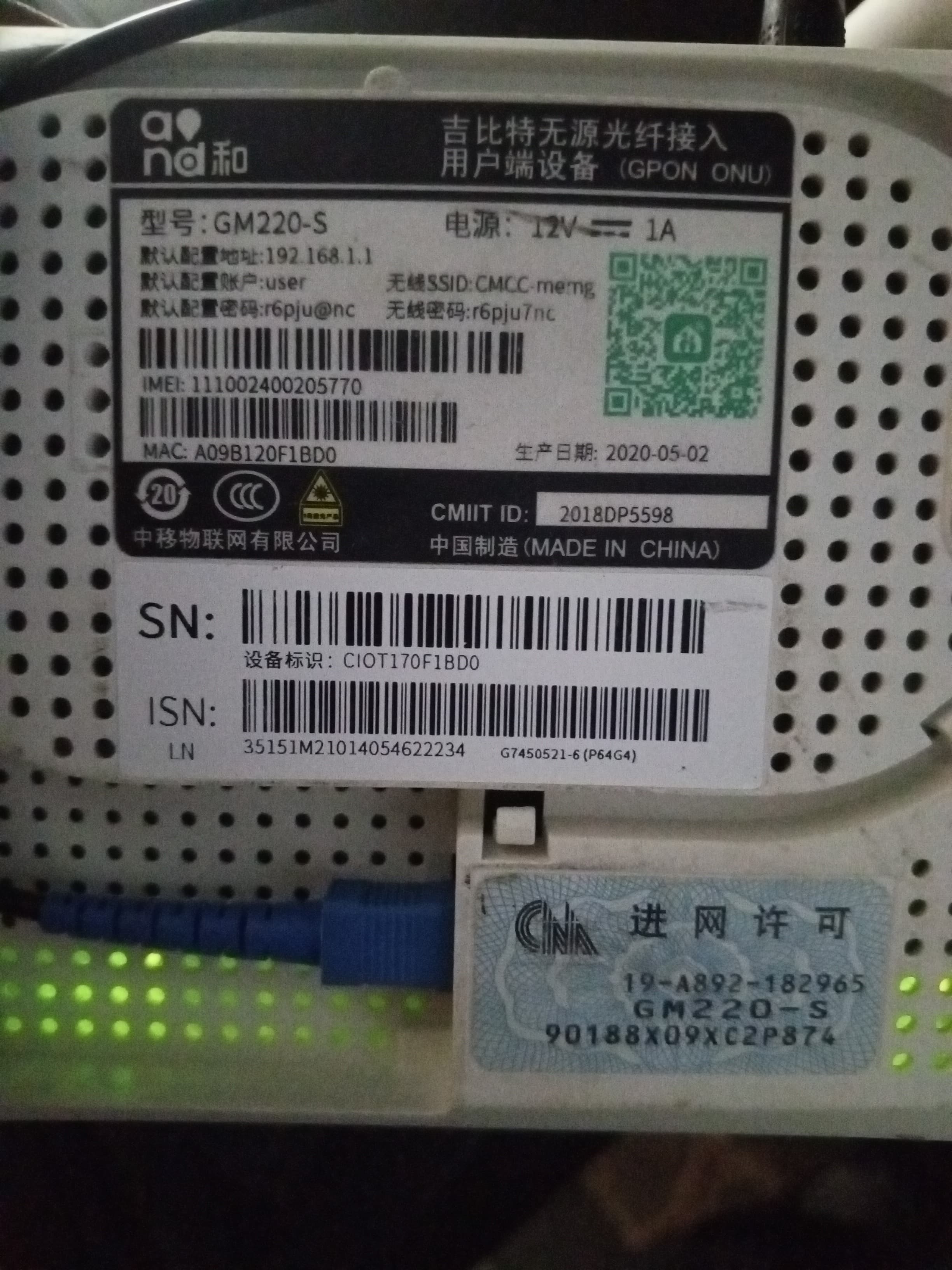 Serial Number (SN) Modem