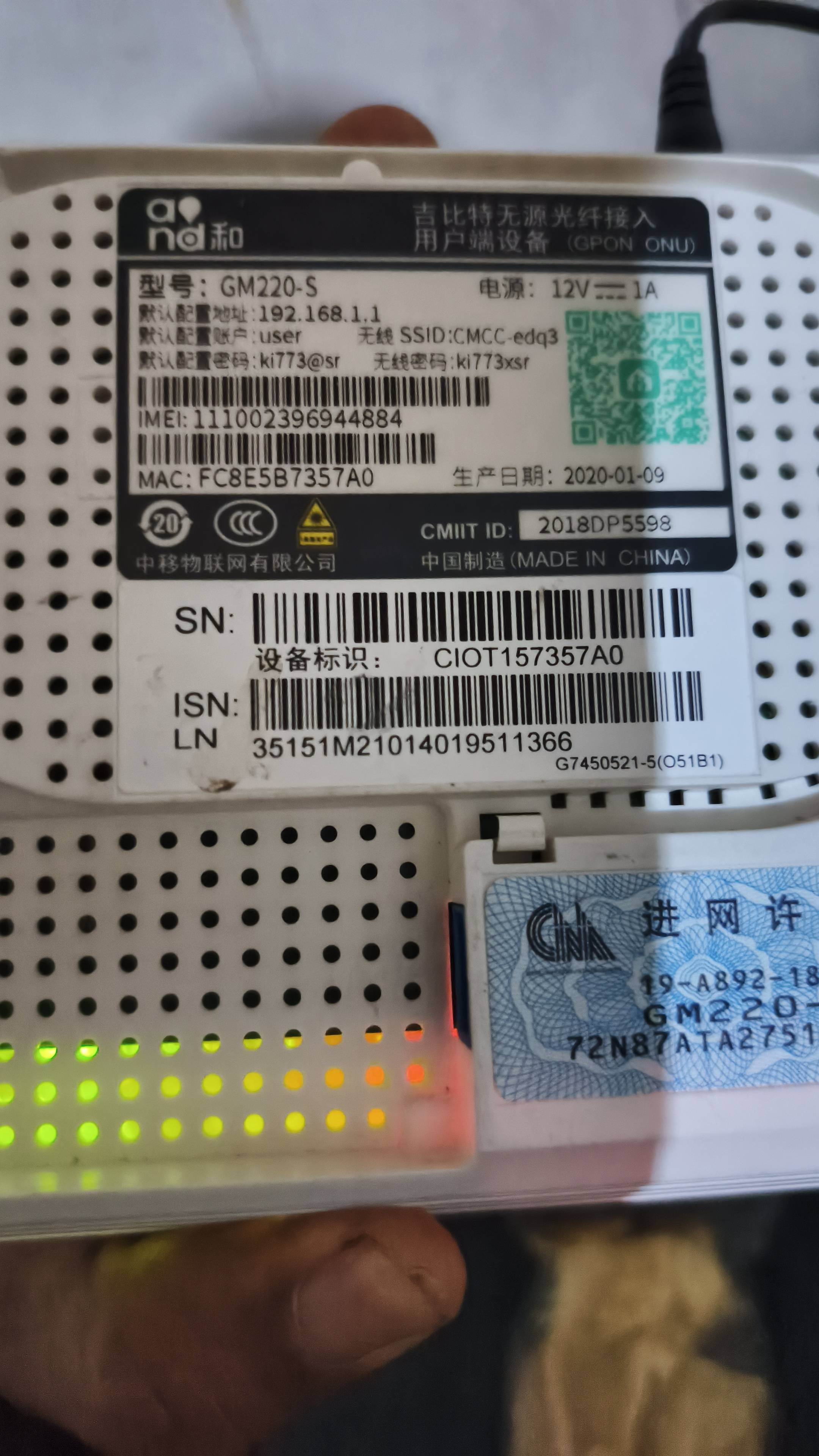 Serial Number (SN) Modem