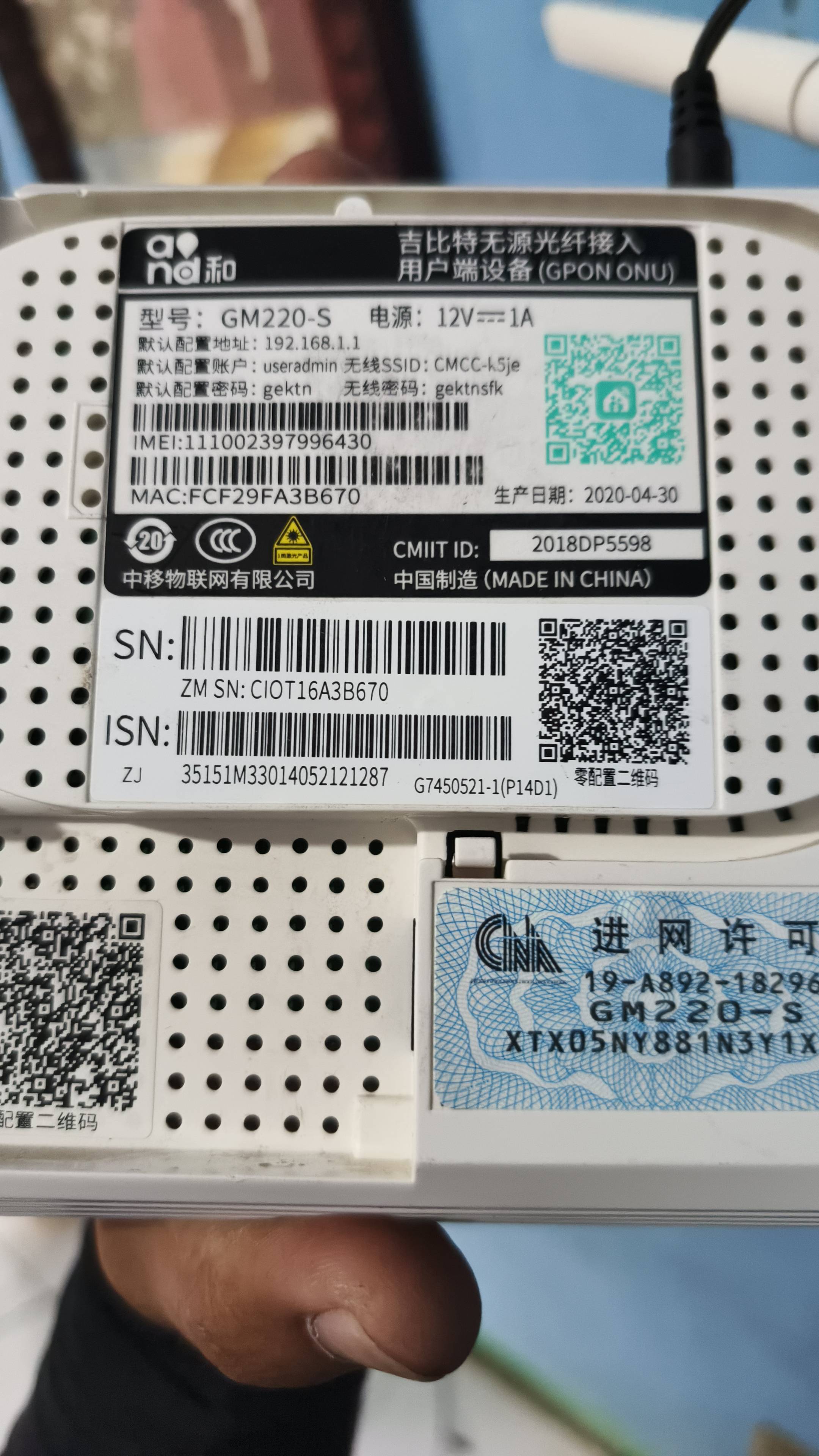 Serial Number (SN) Modem