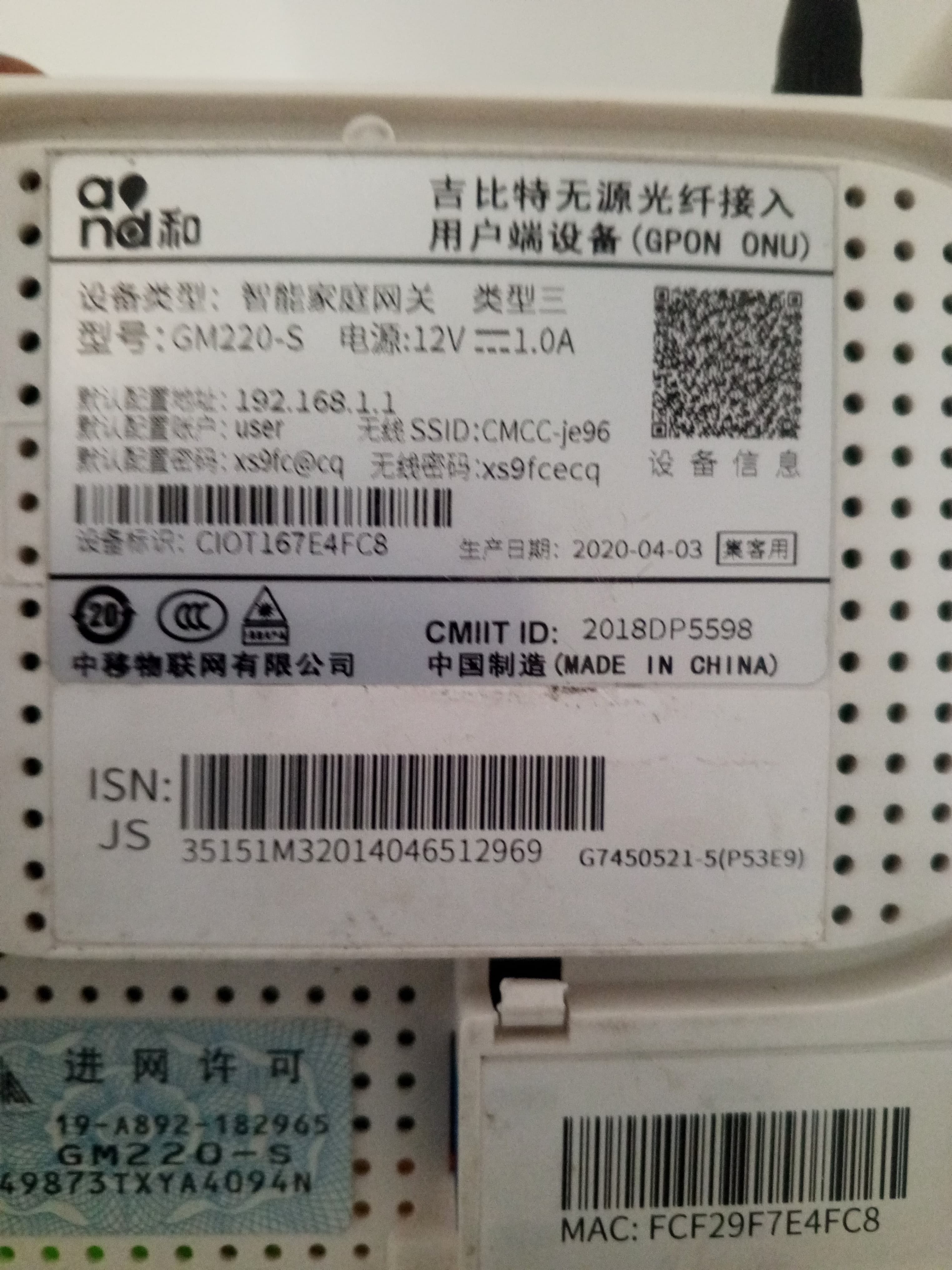 Serial Number (SN) Modem