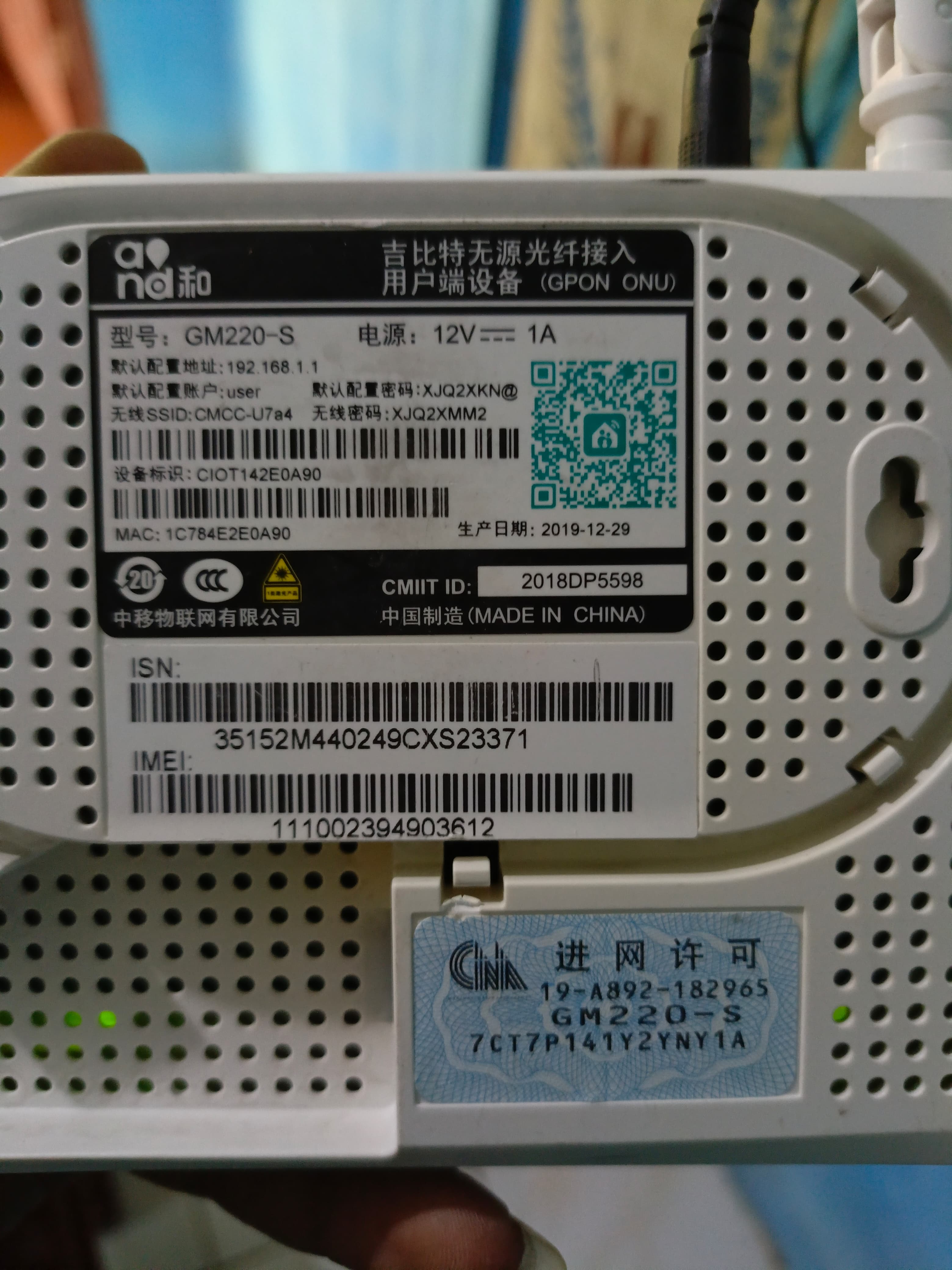 Serial Number (SN) Modem