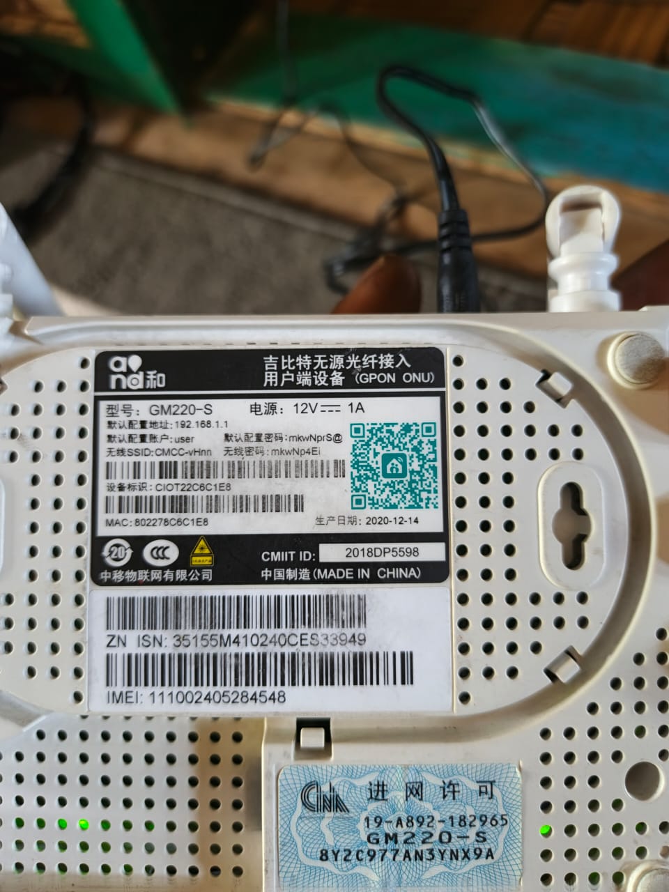 Serial Number (SN) Modem