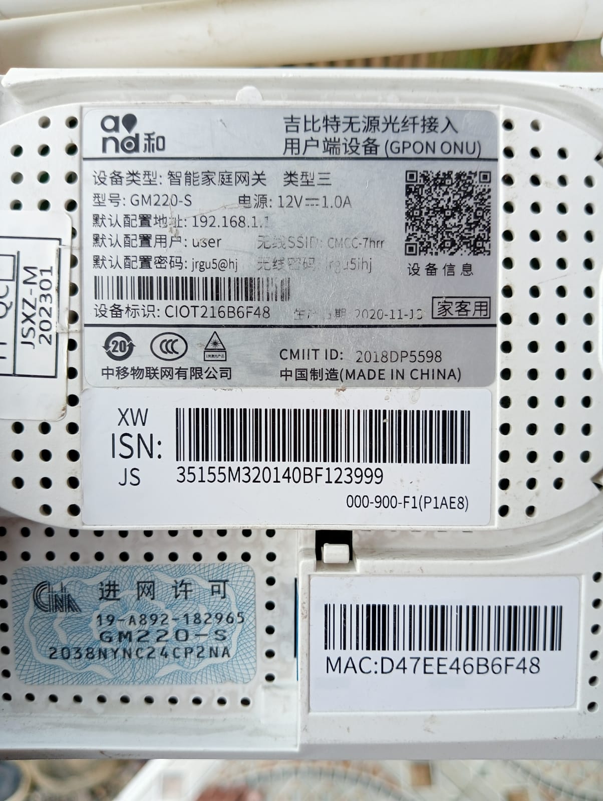 Serial Number (SN) Modem