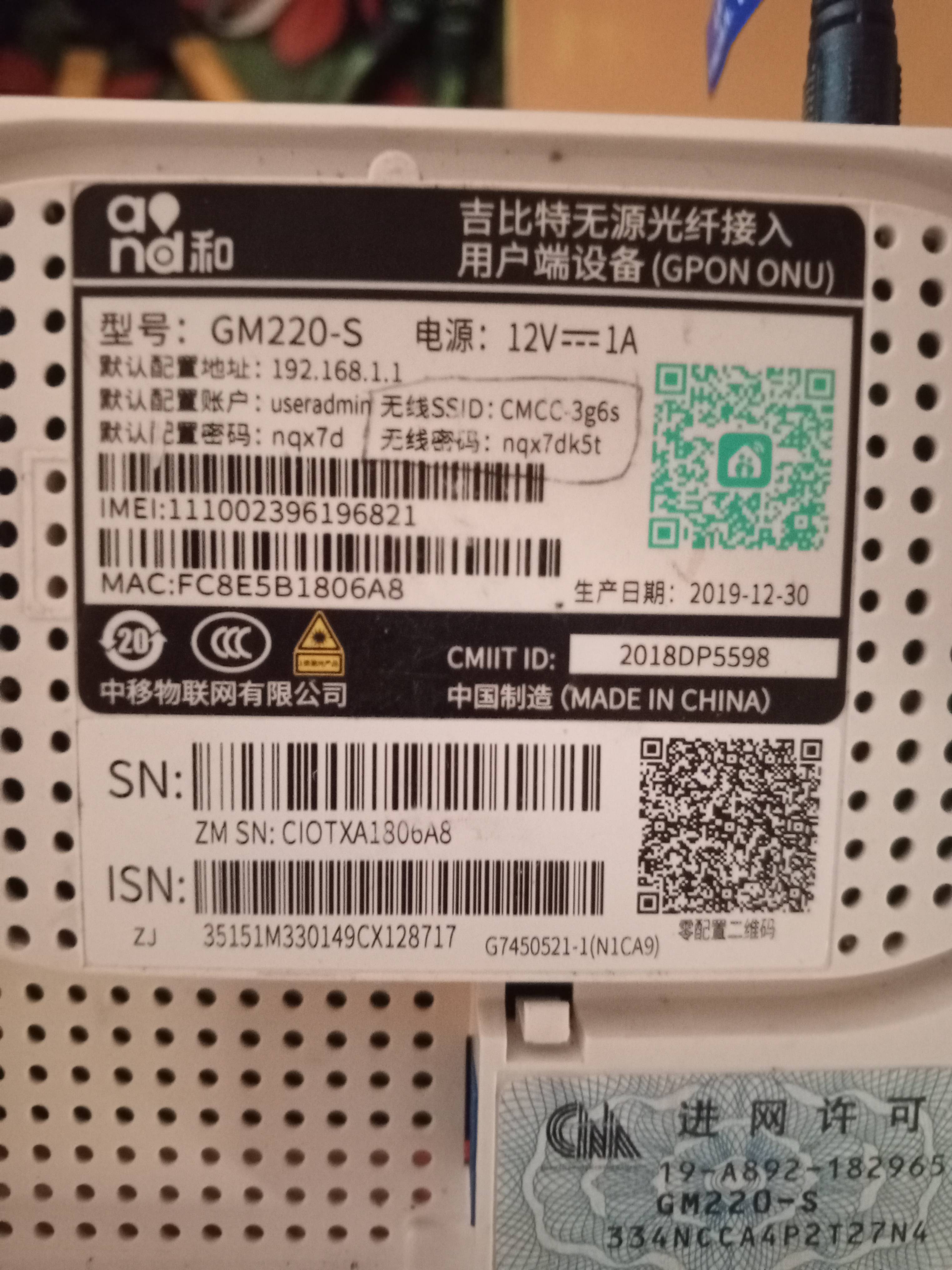 Serial Number (SN) Modem