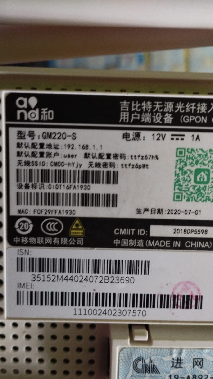 Serial Number (SN) Modem