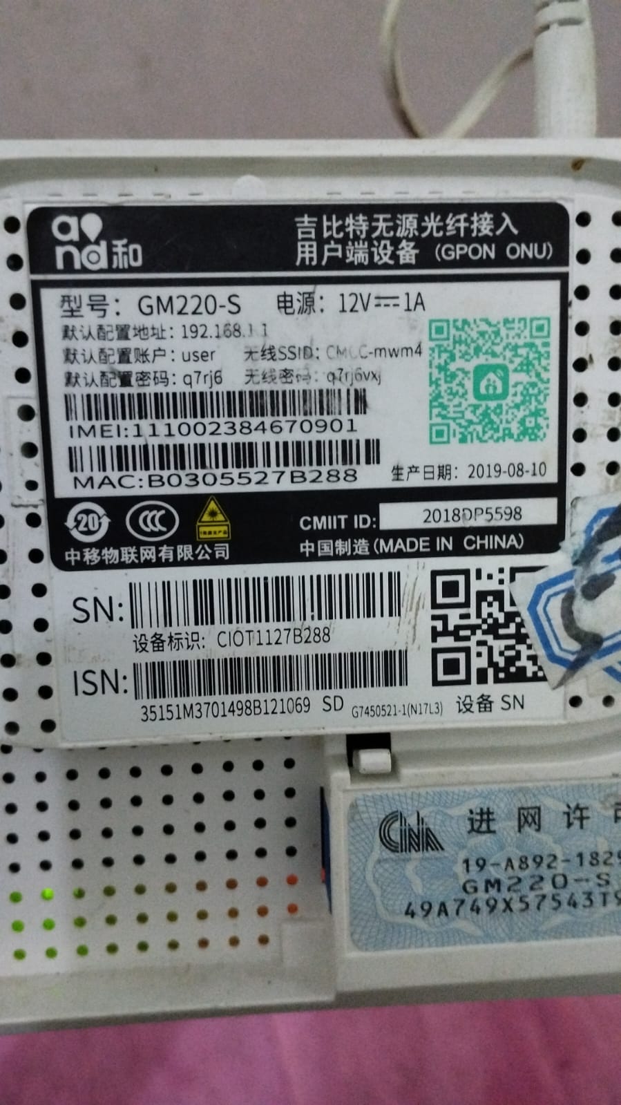 Serial Number (SN) Modem