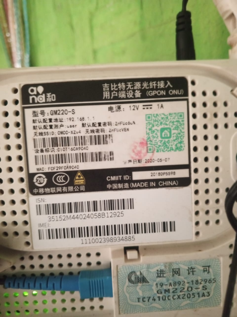 Serial Number (SN) Modem
