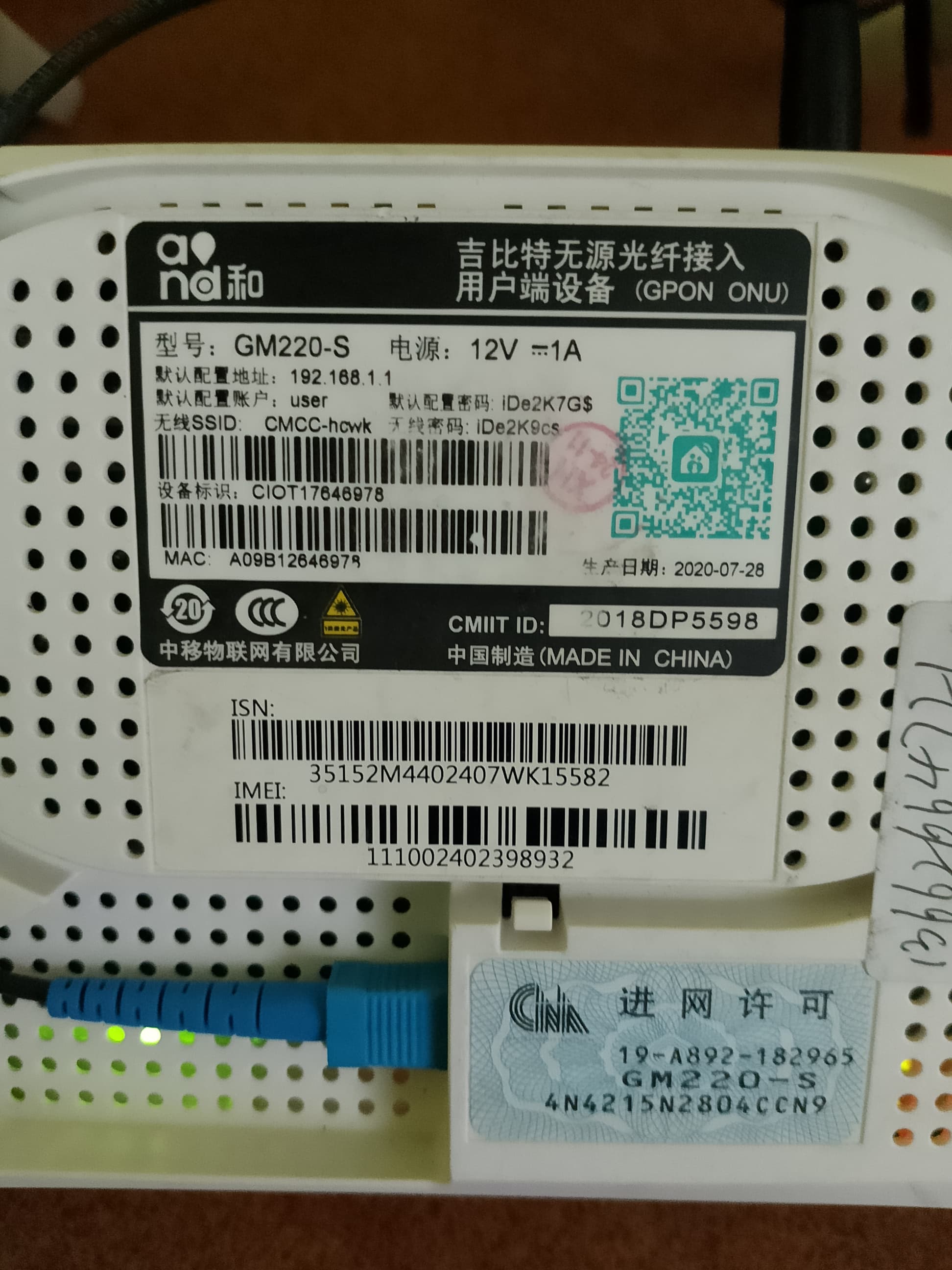 Serial Number (SN) Modem
