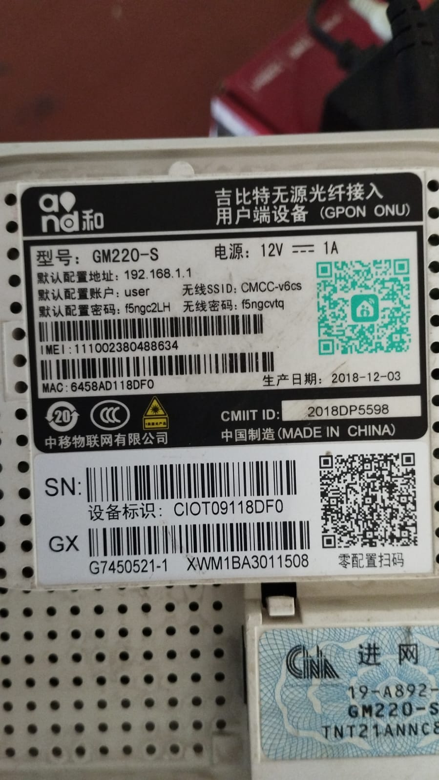 Serial Number (SN) Modem