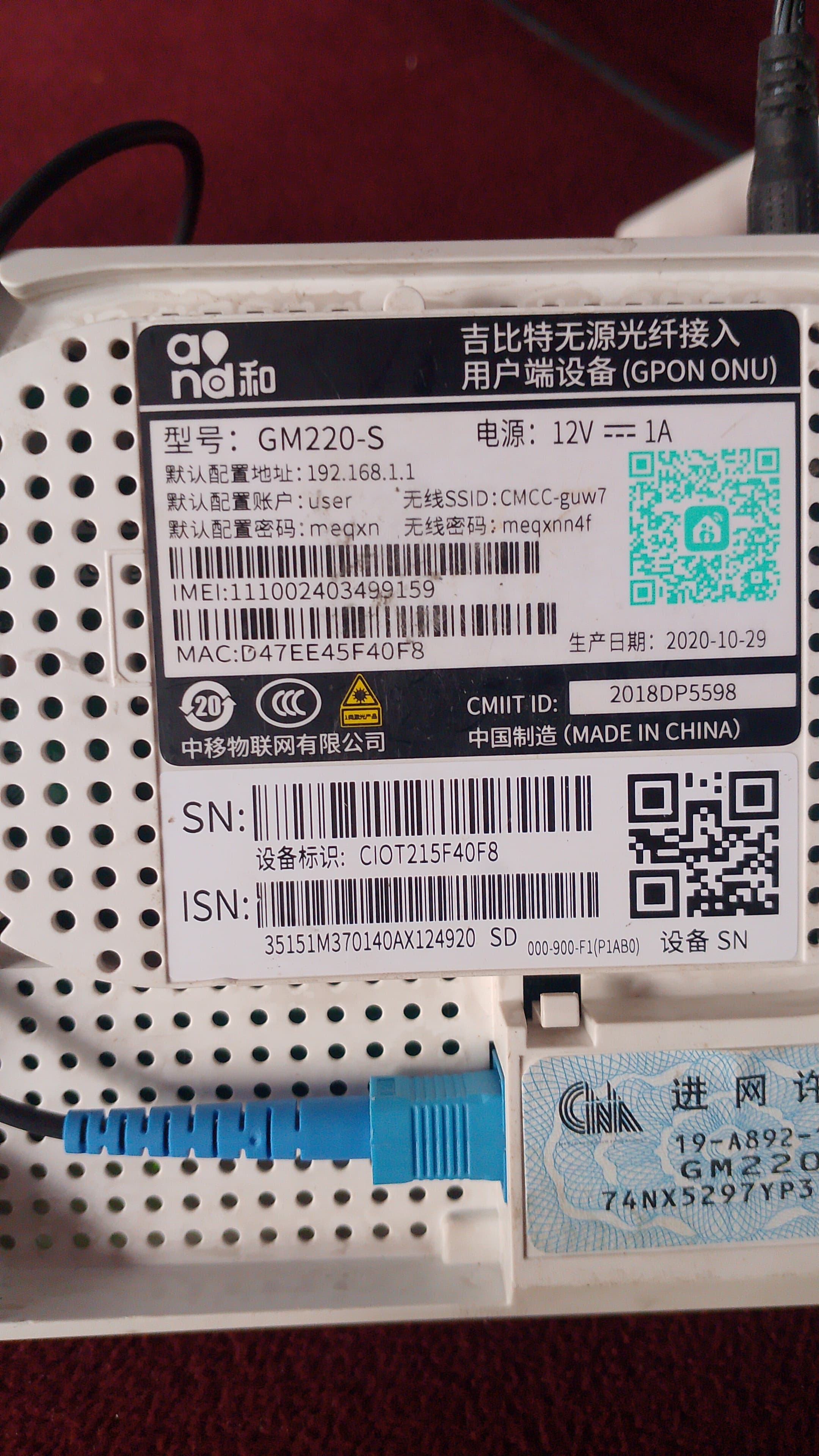 Serial Number (SN) Modem