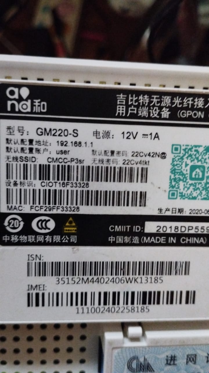 Serial Number (SN) Modem