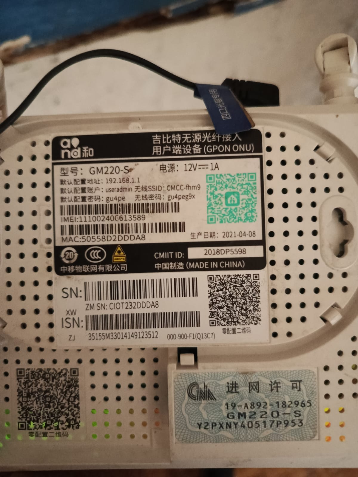 Serial Number (SN) Modem