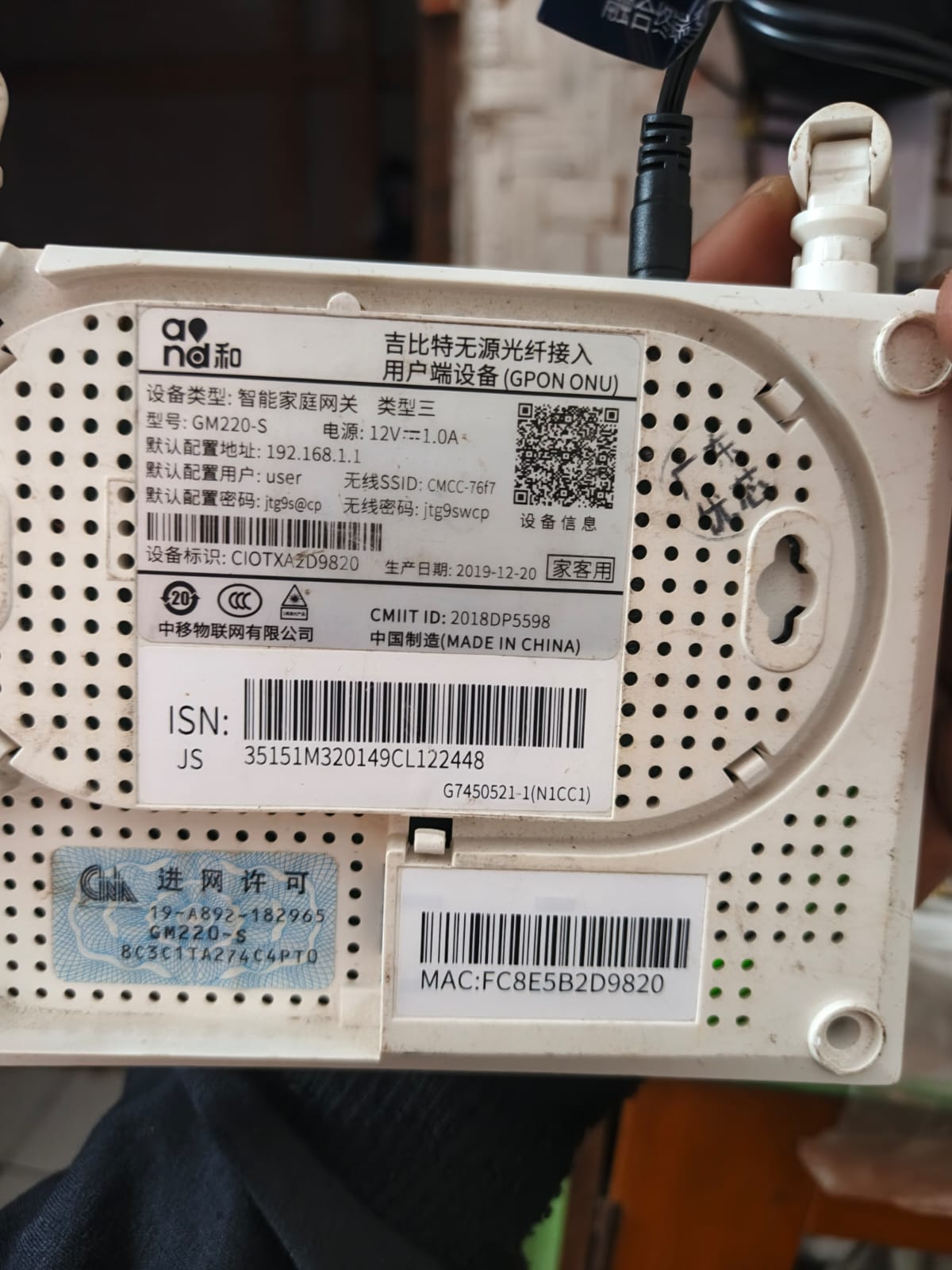 Serial Number (SN) Modem